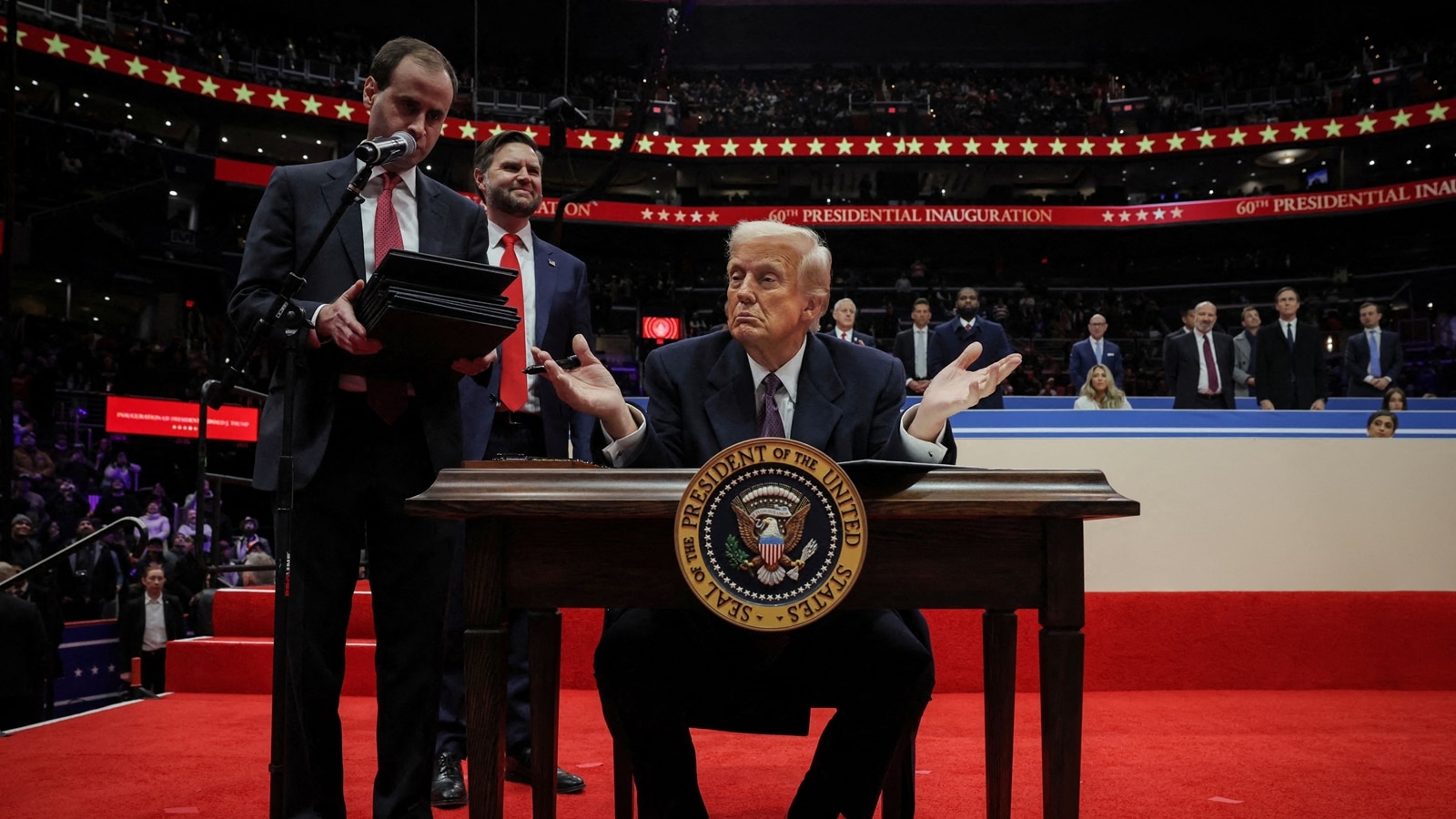 - Trump attends the inaugural parade at the Capital One Arena. During this parade, he signed executive orders while on stage.